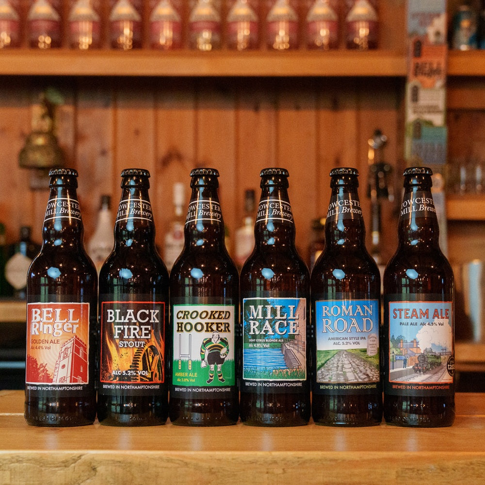 Towcester Mill bottled beer has been specially filtered into 500ml bottles to remove the sediment, but don't worry, we haven't pasteurised it like many fizzy bottled beers. What this gives you is consistently great tasting cloudy free beer every time, with a long shelf life. It's the perfect gift!